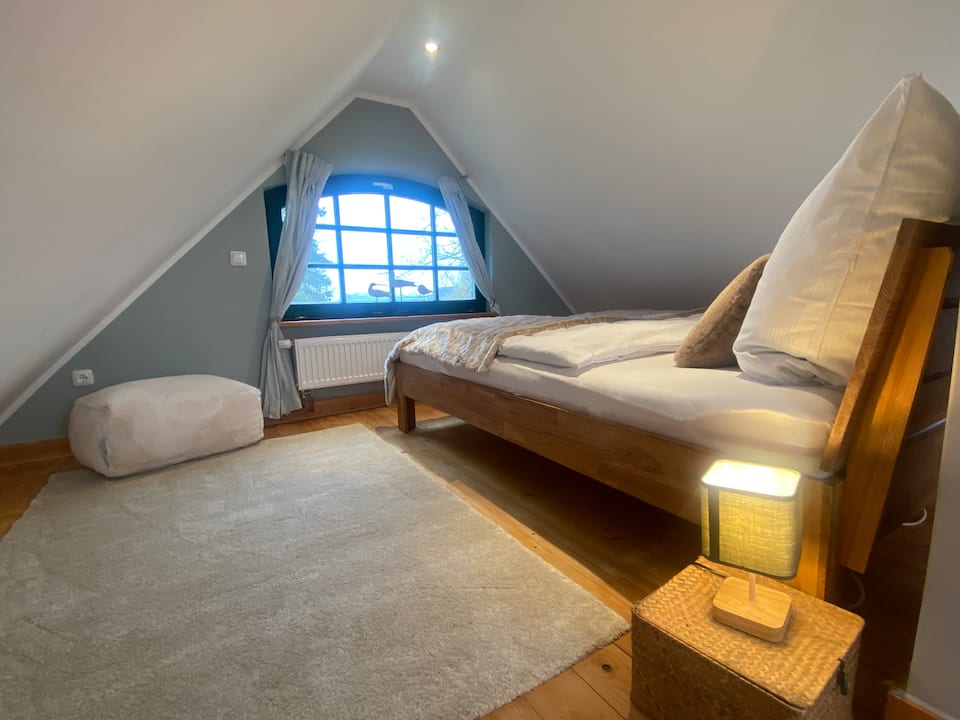 Das Ferienhaus liegt ca. 5 km von der Vineta-Stadt Barth entfernt, an der südlichen Boddenküste. Die Lage ist sehr idyllisch am Ende einer Landzunge, inmitten von Feldern und Wiesen mit traumhaftem Blick auf das Wasser. Die Ostsee und ihre Strände erreichen Sie mit dem Auto in max. 20 min. Die nächste Badestelle mit Strand am Barther Bodden ist ca. 5 Minuten mit dem Fahrrad entfernt.